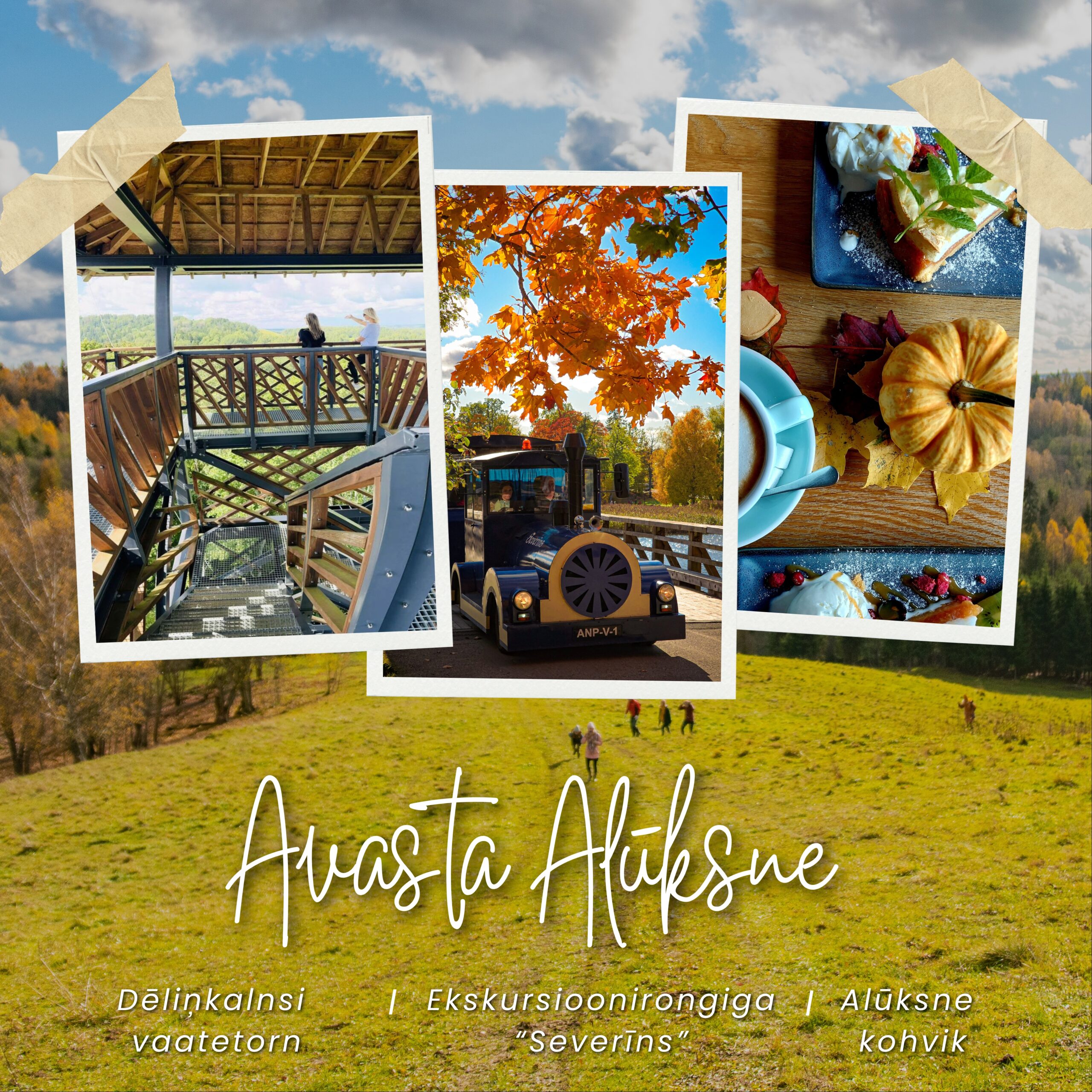 Dēliņkalnsi vaatetorn. Ekskursioonirongiga “Severīns”. Alūksne kohvik.