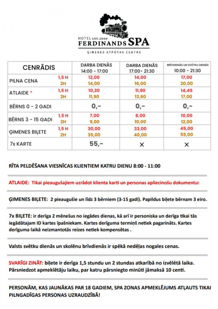 Pēc divu gadu rekonstrukcijas, pārtopot no viesnīcas “Jolanta” par ģimenes atpūtas centru “Ferdinands”, jau kopš pagājušā gada priecē viesus ar modernu kafejnīcu ar bērnu atpūtas zonu, kur pieejams bumbu baseins un šļūkšanas caurule, ērtiem numuriņiem viesnīcā un ģimenēm draudzīgu vidi, tieši SPA zonas izveide ievērojami paplašina atpūtas iespējas un piešķir vietai pievienoto vērtību.