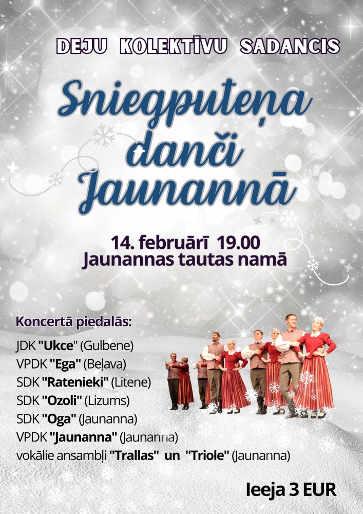 14.februārī 19.00 Jaunannas tautas namā deju kolektīvu sadancis “Sniegputeņa danči Jaunannā”.
