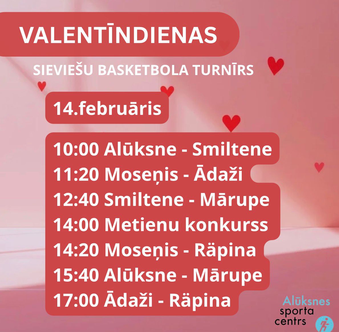 14.-15.februārī Alūksnes Sporta centrā basketbola turnīrs sievietēm. Laiks tiks precizēts.