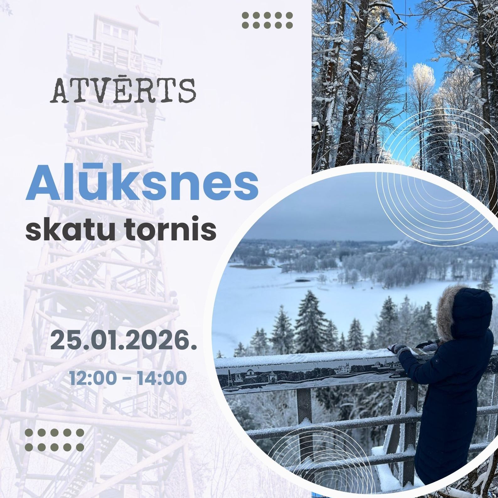 25.janvārī 12.00 – 14.00 Pirmo reizi apmeklētājiem būs atvērts Alūksnes skatu tornis ziemā! Vairāk info: šeit!