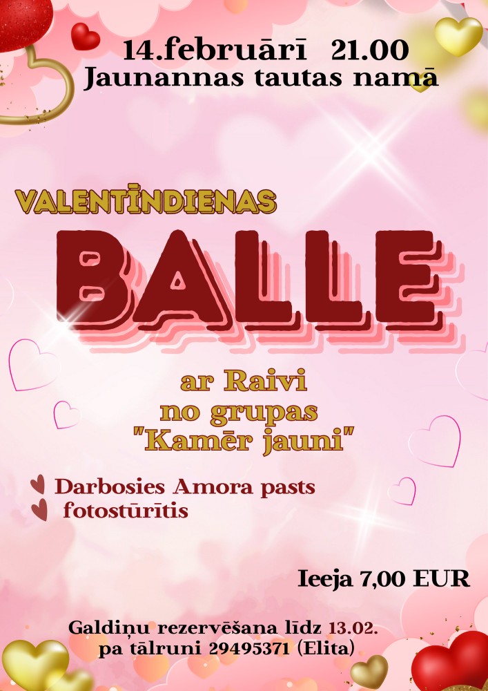 14.februārī 21.00-2.00 Jaunannas tautas namā Valentīndienas balle ar Raivi no grupas “Kamēr jauni”.